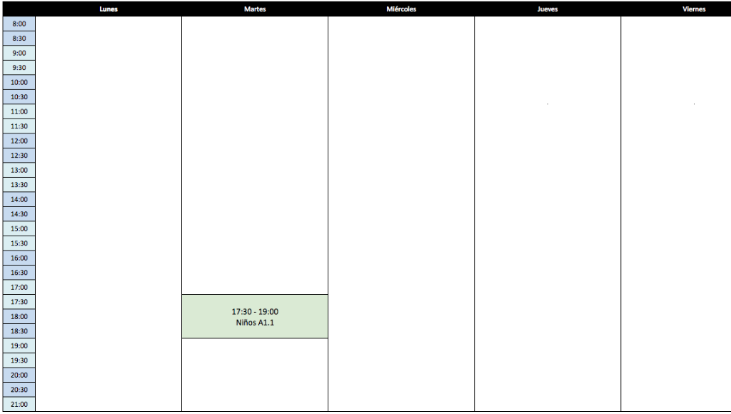 ¡Atención! El horario puede sufrir variaciones dependiendo de la demanda. Si estás interesado en un curso, ponte en contacto con nosotros lo antes posible.