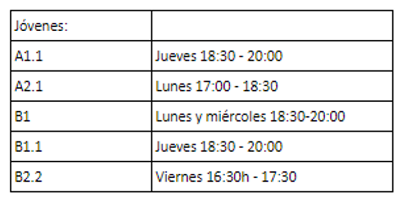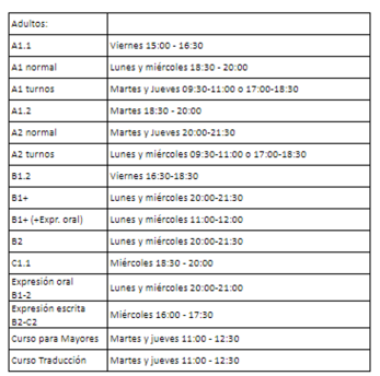 ¡Atención! El horario puede sufrir variaciones dependiendo de la demanda. Si estás interesado en un curso, ponte en contacto con nosotros lo antes posible.