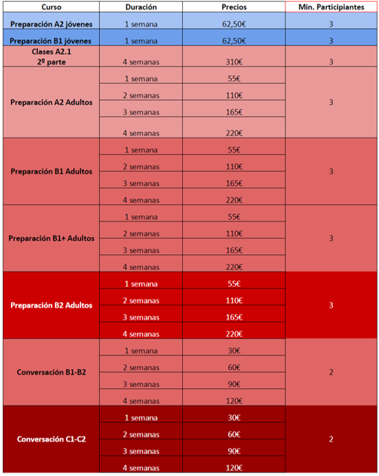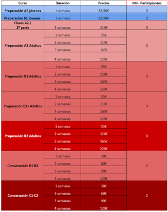 * Los cursos de preparación y de conversación se pueden coger en packs de 1, 2, 3 o 4 semanas entre el 4 y el 29 de septiembre.